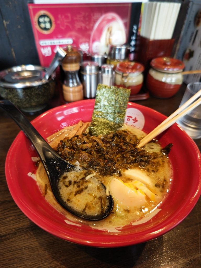 「埼玉のソウルフード」?パート2 2023.05.30 いつも百歩ラーメンバリカタ+味玉。 店員さんもわかっているので食い気味で聞いてくる。でもたまーにチャーシュー麺が食べたくなるのだが戸田店で食べると100円安い…ていうより、川口店だとチャーシュー麺がなくなっちゃったので百歩ラーメンにチャーシューをトッピングする形になるのでそうなってしまうのだ😭 チャーシューはかなり食い応えがあります。そして辛子高菜が美味しい!そして辛い😭 戸田行ったら食べてみてね~‼️たぶん東京にはないはず。