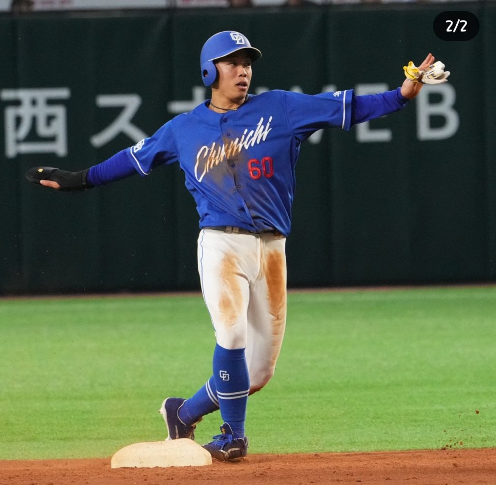 岡林&ブライトやった😃 2023.05.31 今日もやっぱり劣勢だったけど4回オモテに岡林の盗塁から頼れる我らが細川成也様がタイムリーやで☺️ そして決め手となるラッキーセブンのブライトが満塁走者一掃のタイムリー3ベース!(記録は2ベースかもしれない)! まだ試合は終わってないが9回ウラ6点差! 明日も頼むでぇ‼️