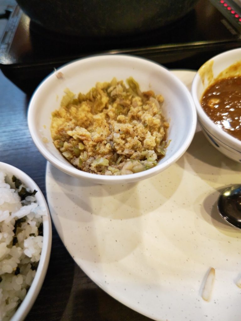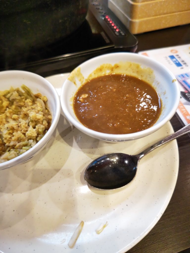 オリジナルタレとカレーのタレ(ただのカレー)で味変しつつ今日は食べてみよう✨