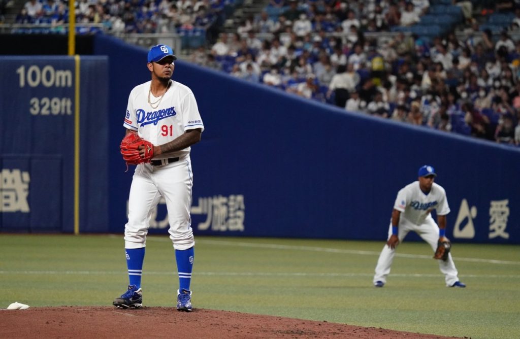 ドラゴンズの先発も来日初となるメヒア!初回に村上に犠牲フライを打たれ1点先制を許す。