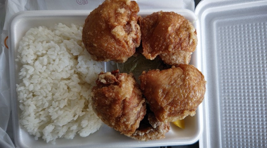日本亭というお弁当屋さんに来た。ネットで見るとデカからというでかい唐揚げが美味しいよというのでそれが4つ入った弁当を頼んだ。