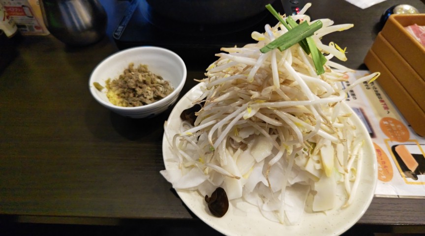 二郎系しゃぶ葉🌿 2023.09.11 しゃぶ葉でこれでもかってくらいもやしを盛ってみた✨二郎系の店ですか⁉️ 暑いせいか肉はあんまりいらないのでもやしをメインにたけのこ、しめじ、大根などをショウガたっぷりの特製ダレで食べる。 でも値上がりしたせいか地味に高いんだよな!