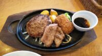 ハンバーグとポークグリルとカニクリームコロッケ‼️ #ステーキのどん #ハンバーグ 2023.12.01 12月最初のランチはステーキのどん🎵 ひさびさだし日替わりランチを…✨ パンチの効いたオニオンスープとわかめスープも好きだな☺️ ハンバーグとポークグリルとカニクリームコロッケ‼️ 魚介類ほぼダメな僕もカニクリームコロッケは不思議と大丈夫なんですよね😅 ひょっとして魚介じゃない⁉️(笑) そして今日は食欲モンスター‼️ ライスおかわりしてやりました✨ そして完食しました✨ スープもこんだけ飲んでこれを繰り返せばヤバい事になりそう☺️(笑)