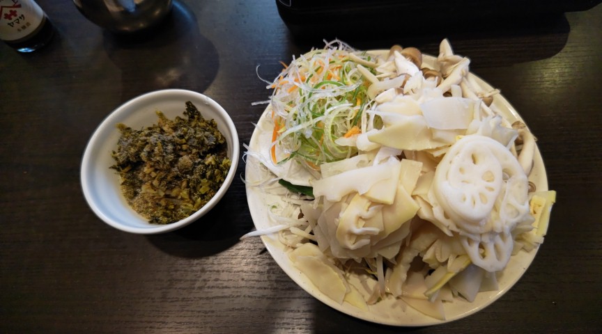 ショウガと高菜をたっぷり入れて好みのタレに仕上げます✨