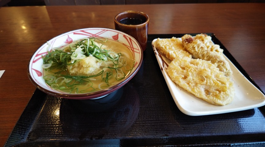 れんこん天、たけのこ天、かしわ天1つずつ‼️バランスがよさそうに思うけどもともとれんこん天を3つ食べるのが好きなので組み合わせに少し悩んでしまう🎵(笑)丸亀製麺