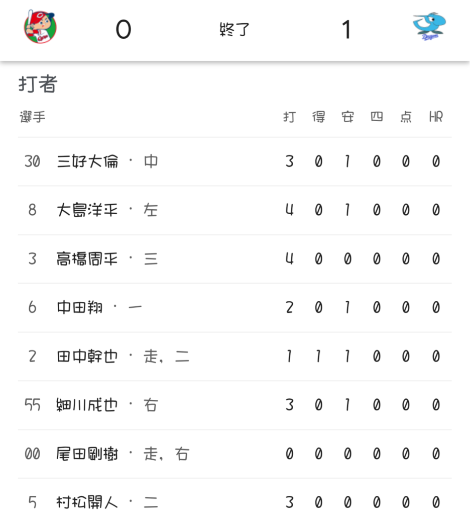 広島0-1中日(マツダ)