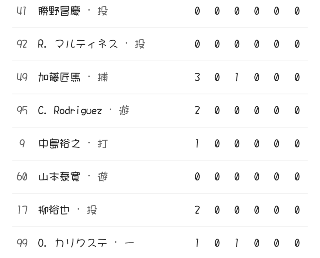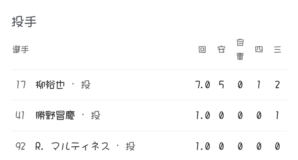 柳のライト前の当たりがゴロアウトで珍しいライトゴロまであり、両チームの執念の守りがさらに試合を重くしていく。