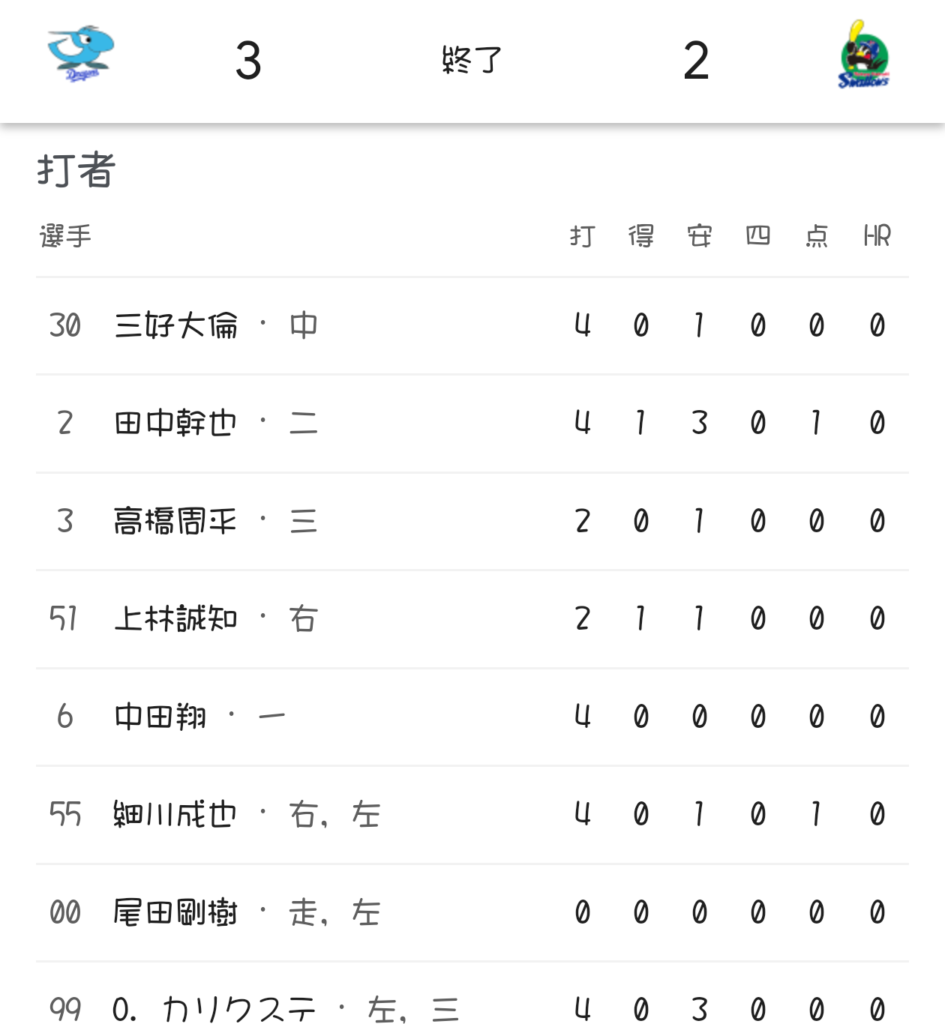 結果セカンドライナーの時点で正直なんとか抑えられたという印象しかなくてヤクルトの選手の意識の高さが中日を上回った先制に繋がったように思える。