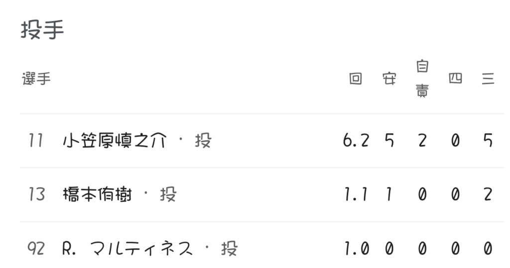 小笠原はよく投げた、でもダメージはかなりあるはず。しっかりチーム全体でケアしてもらいたい!