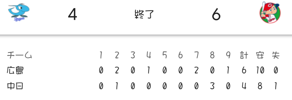 中日4-6広島(バンテリン)