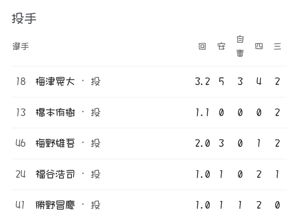 2回ウラにここまで当たりの出ていない上林誠知が移籍後初ホームラン。これをきっかけに打ちまくってほしいがコンパクトに振ったら入ったという感じなのでそこまでは期待はできなさそうだが…😅