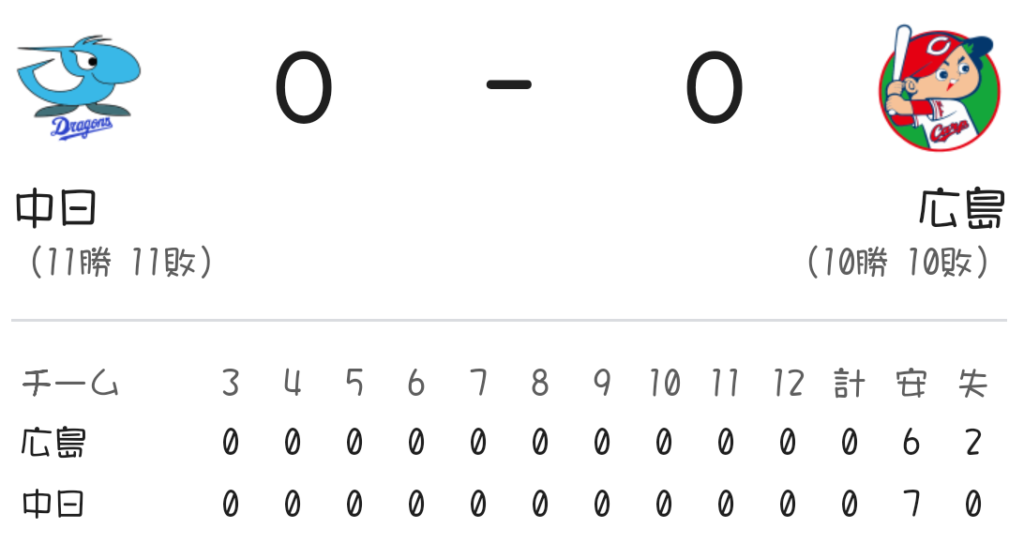 しかし12回無得点でスコアレスドロー。