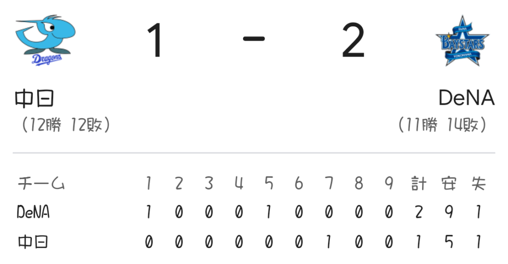 中日1-2DeNA(バンテリン)