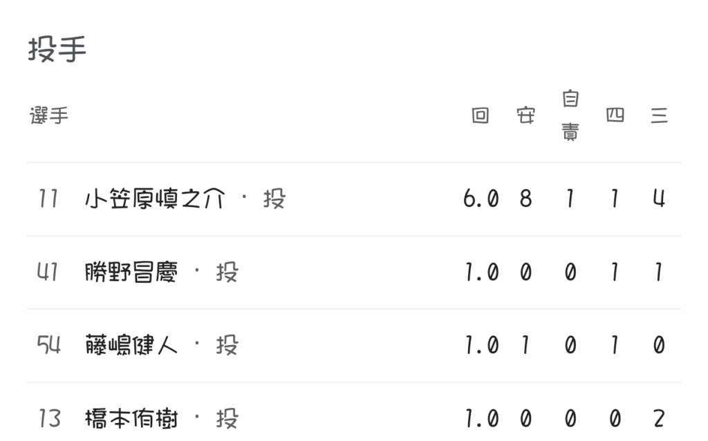 チームも痛いが小笠原は大丈夫か?気丈に投げてくれた今日はナイスピッチングで6回を自責点1。