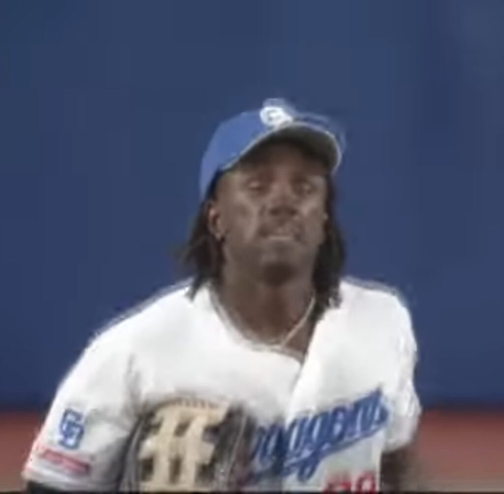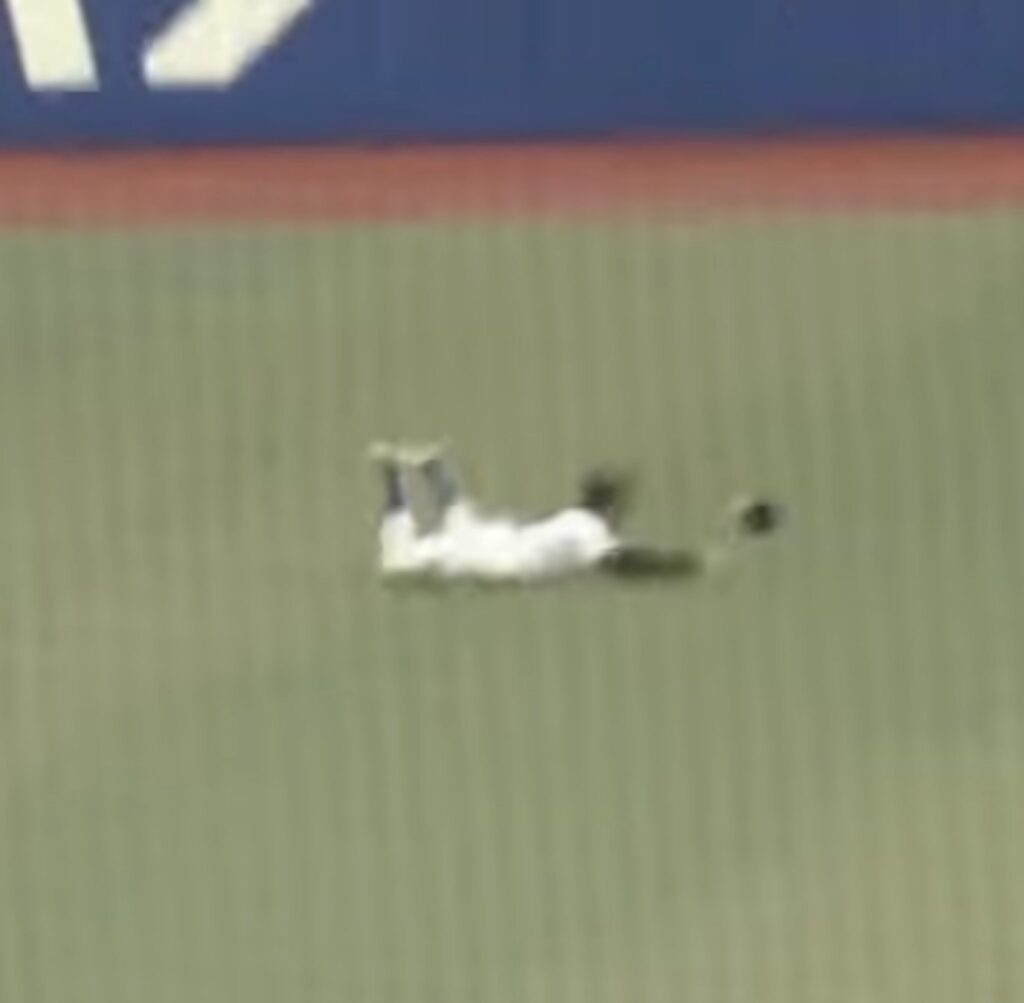 7回オモテ2死から阪神坂本が左中間に打ち返していくがレフトに入っているカリステがスーパーファインプレーで小笠原を救う✨