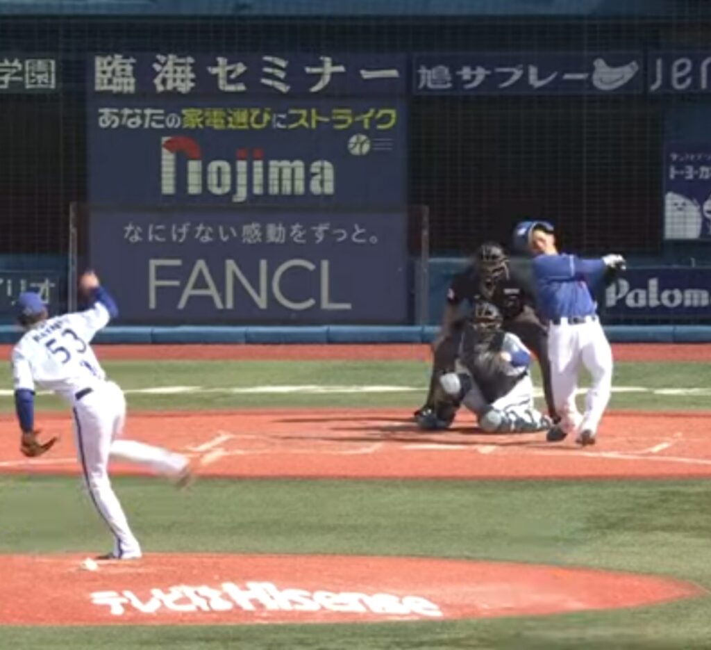 初回オモテ2死から3番福永裕基、4番細川成也の連続ヒットで先制のチャンス。