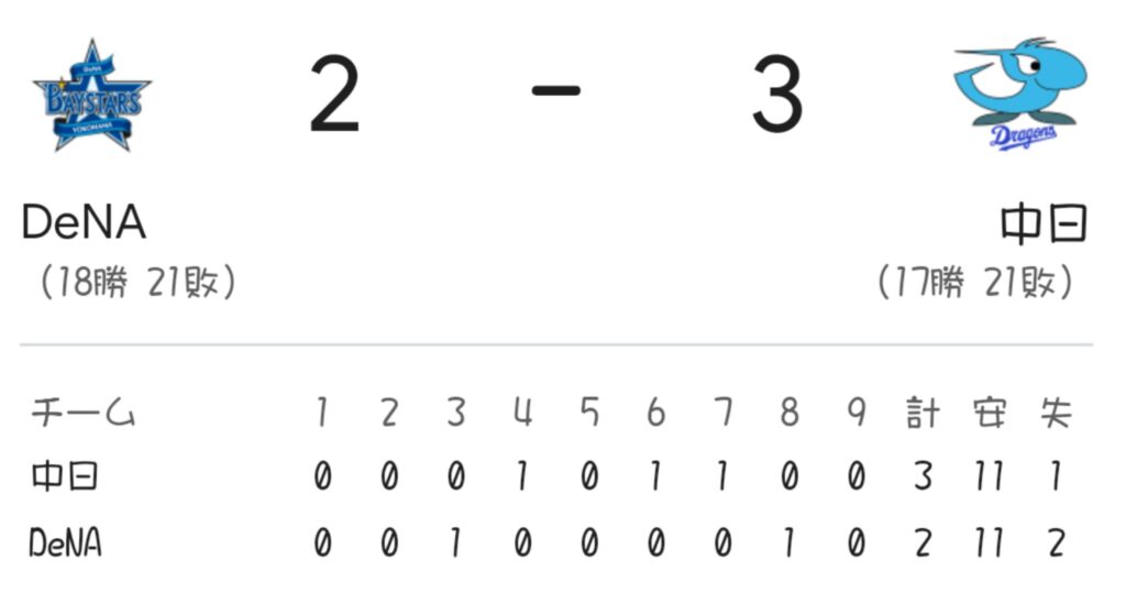 DeNA2-3中日(横浜スタジアム)