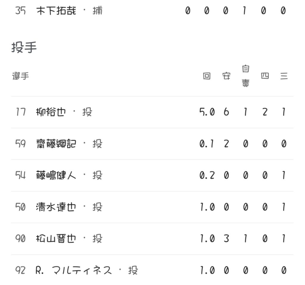 先発柳裕也は粘りの投球で5回で代打を送られ降板となるが今季3勝目♪