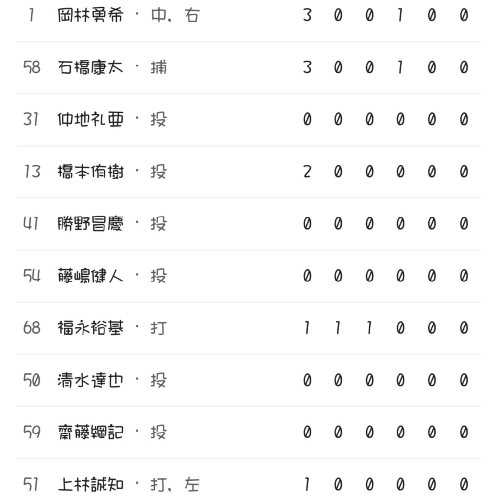 6回オモテは藤嶋健人が3者凡退に抑えて、その裏には代打福永裕基が2ベース、村松が送りバント、田中幹也がタイムリーで更に1点追加。