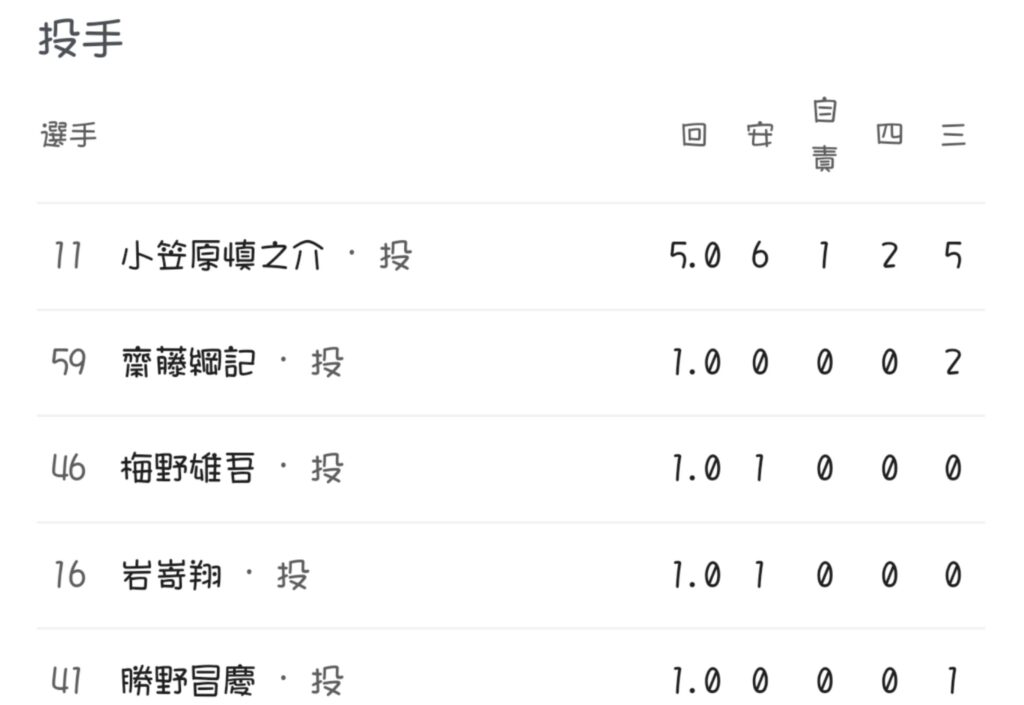 普段と比べるとやや球威がなくコントロールもよくない印象だがたぶん普段戦っているセリーグのチームなら小笠原の印象があるのでたぶん抑えられていただろうくらいの調子に見えた。