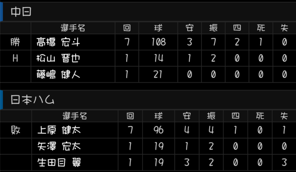 ファイターズ戦はキツネがいつも怖いのだが宏斗が本当に素晴らしいピッチングでキツネの恐ろしさに立ち向かってくれた!