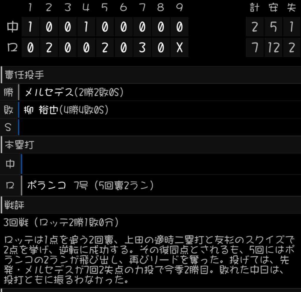 ロッテ7-2中日(ZOZOマリン)