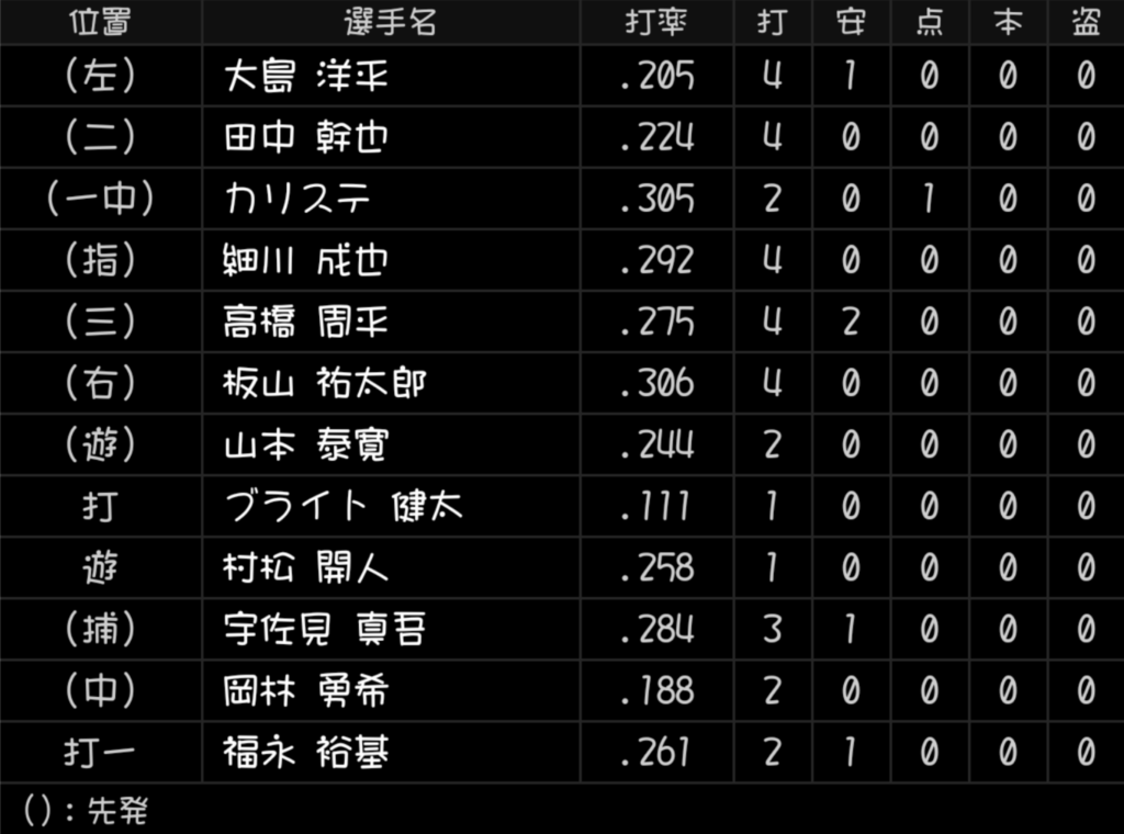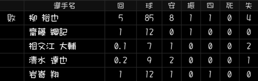 だが2回、柳裕也は先頭・佐藤への四球をきっかけに逆転を許すと、5回にはポランコに2ランを被弾して4失点。