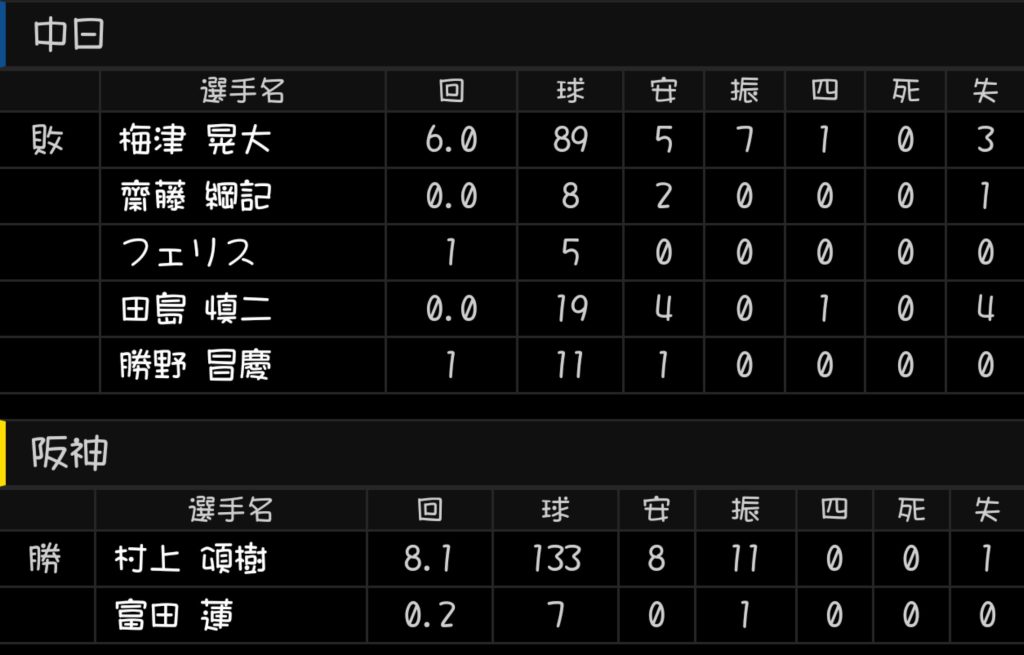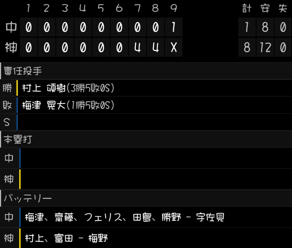 阪神8-1中日(甲子園)