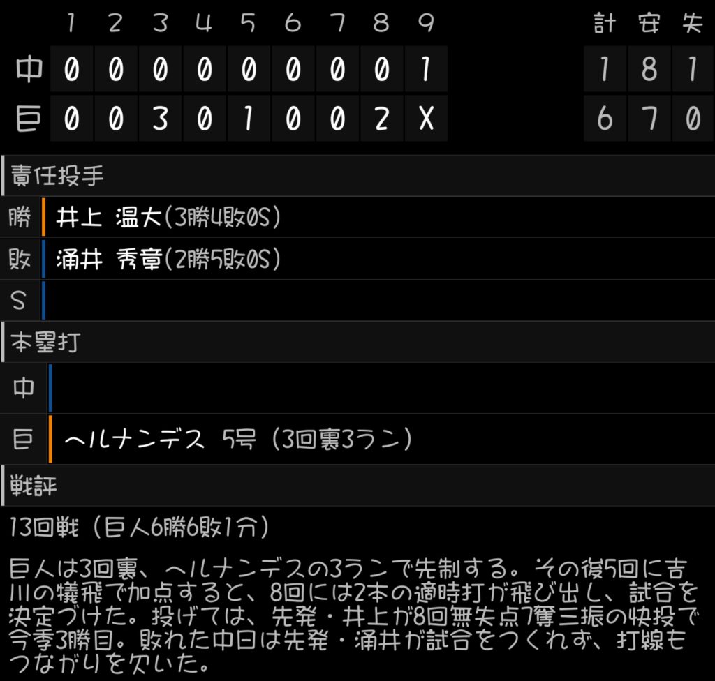 結局、3ラン打たれた時点でみるの辞めて正解だった。1点打線だし🙄