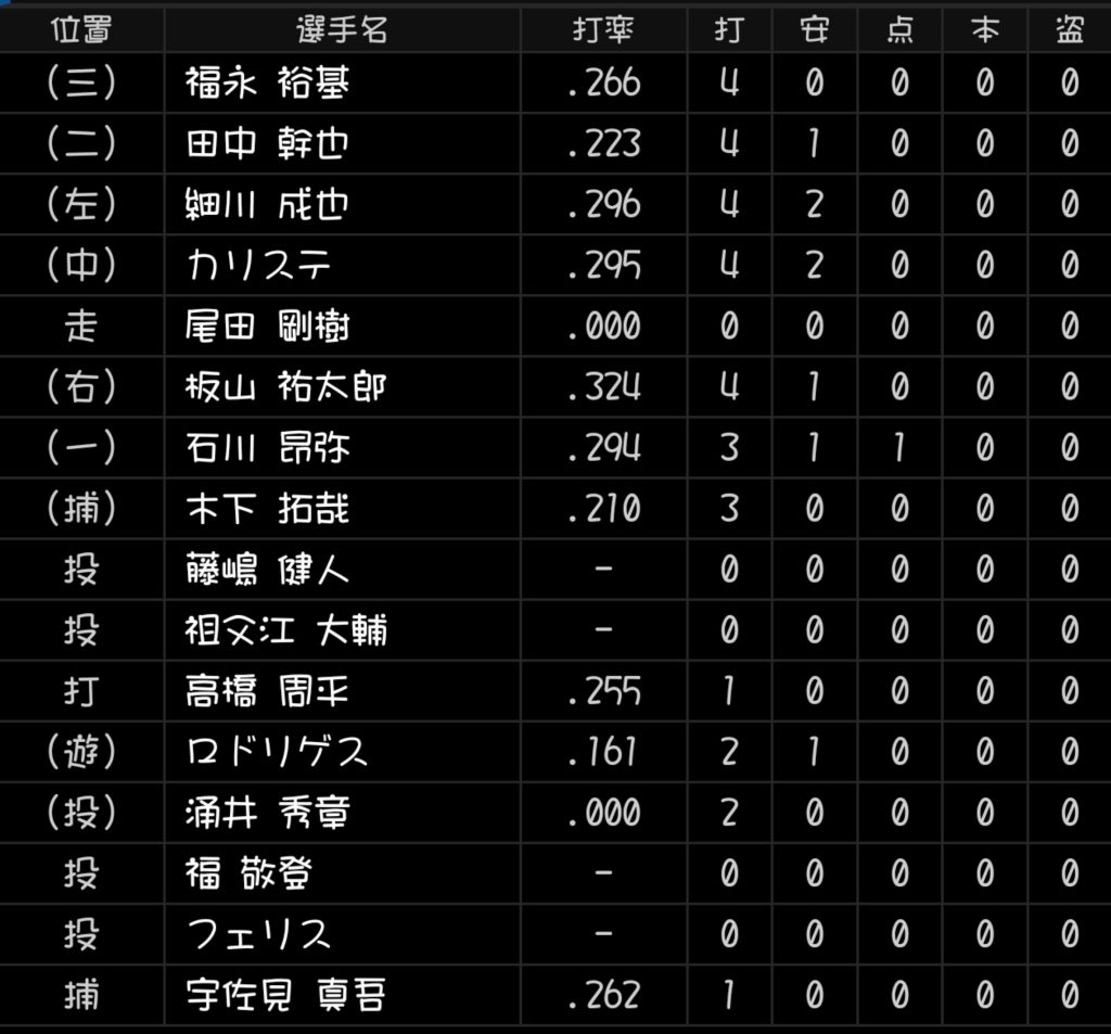 明日はゲームがないので金曜日の広島戦でチャンス時に集中力を高めた打席を見せてもらいたい!