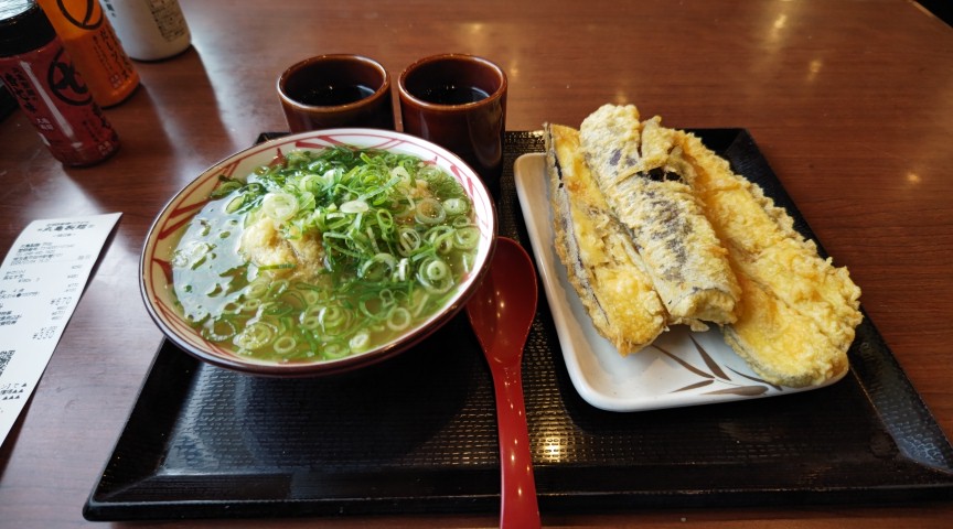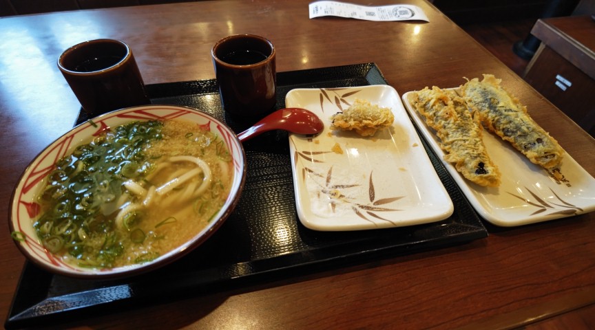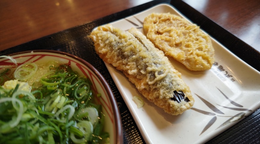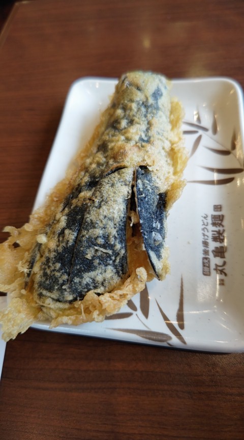 - 丸亀製麺で長なす天×2、れんこん天1つ