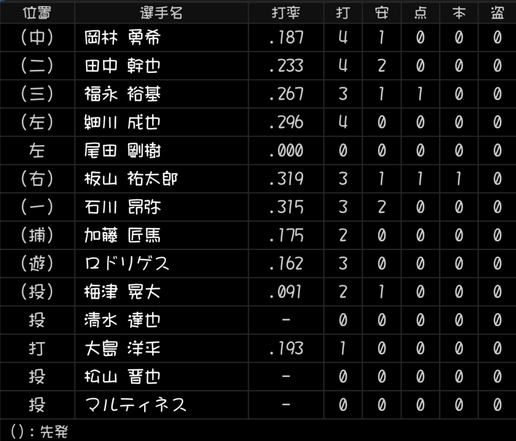 「同点は覚悟はしていたけど福永も素晴らしい守備と送球でよかった。リリーフ陣も頑張ってくるた!」