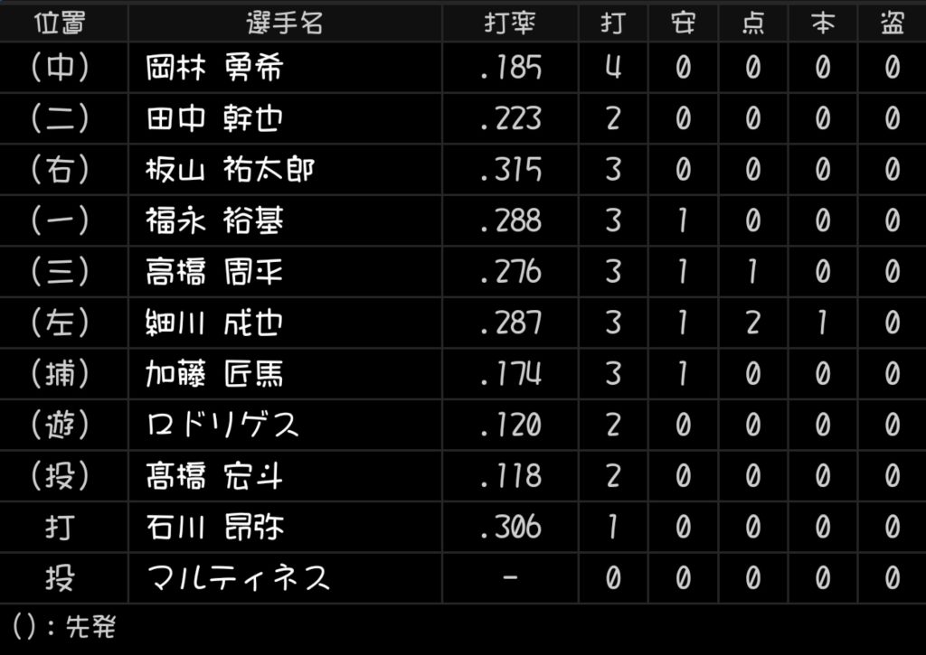 体制を崩されながらスタンドに放り込み3連続長打となり村上から3点先制。非常に大きな意味を持つ追加点になった。