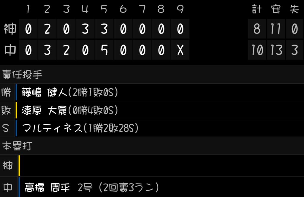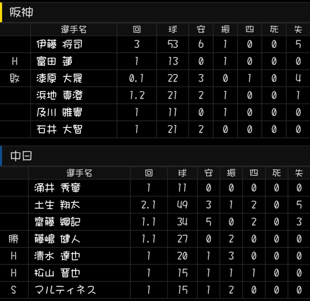 中日10-8阪神(バンテリン)