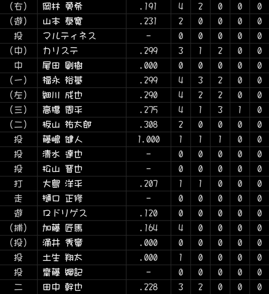 リリーフの稼働はまず必須なので継投の人数が足りないように思えるので喜んでばかりもいられない。先発投手の誰かをベンチ入りさせておかないととんでもないことになるのでは…?
