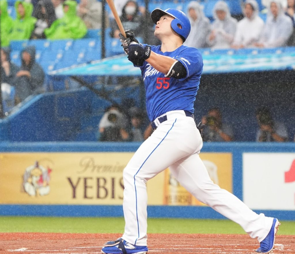さらに5番細川成也が今度はレフトスタンドへ2者連続ホームラン。