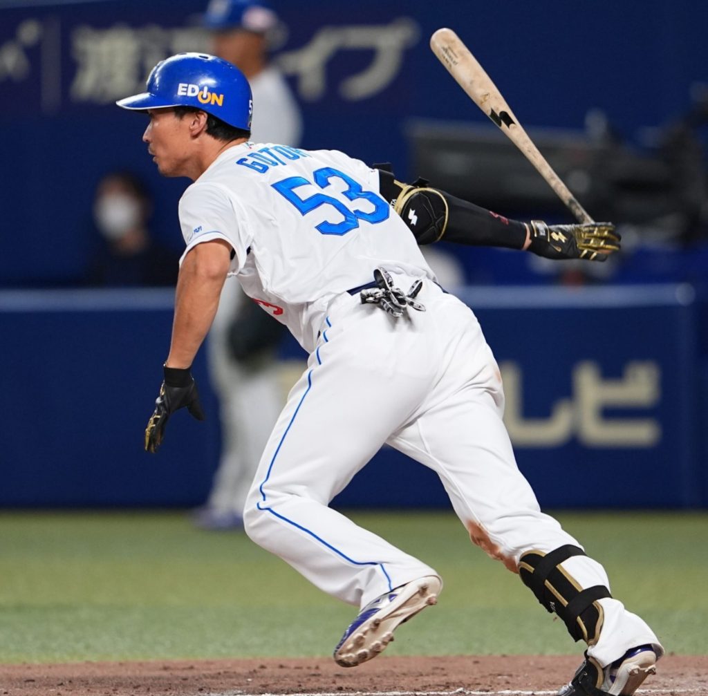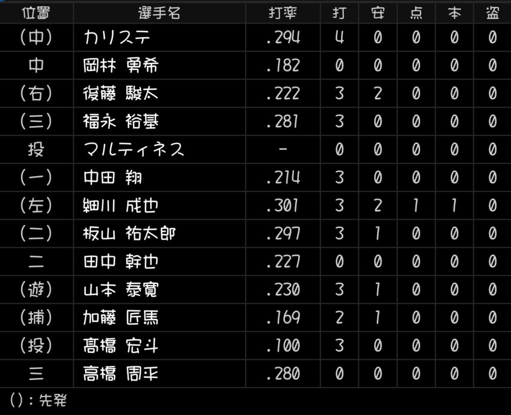 もうひとり今季初スタメンの後藤駿太が好打好守でマルチヒット。8回にも右中間に抜けようかという当たりをシングルヒットで止める好プレーもあり、たぶんこの連戦はスタメン起用当確かな。