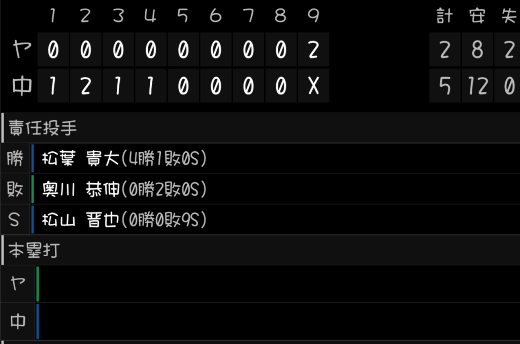救援に出た松山晋也も2者連続三振に切って取り松葉に4勝目をプレゼント。この場面でもさすがのメンタル、素晴らしいリリーフである‼️